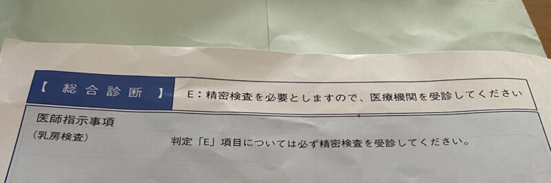 まさかのE判定で、精密検査を受診してくださいとの記載!